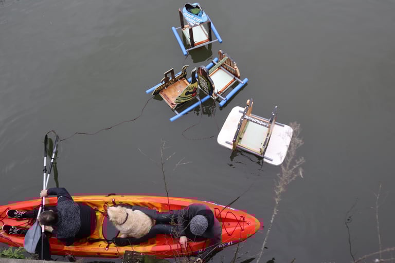 Distribution of nesting platforms for coots by kayak on the waterways of Ghent, February 2025. With thanks for the physical and emotional support of Walter Vandevelde and dog Javel.