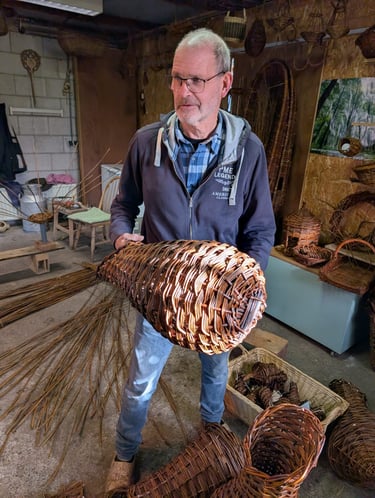 After being kindly introduced to this cultural practice by our friend Wapke Feenstra, and put in contact with Hans, a traditional basket maker in the Netherlands with extensive experience in crafting duck baskets, Jaron visited Hans to learn more about the craft of willow weaving.